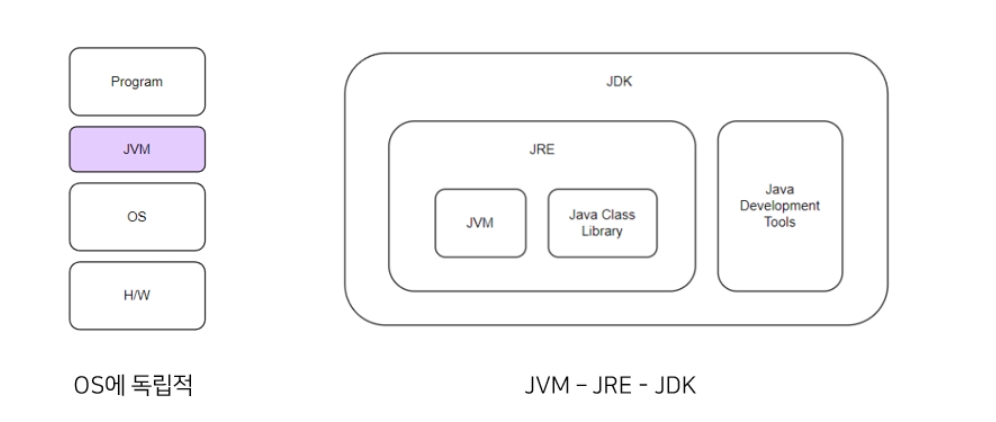 μ΄λ€ OSλ‘ μ κ·Όν΄λ JAVAλ₯Ό μ¬μ©νλ €λ©΄ JVMλ₯Ό ν΅ν΄μ λμνκΈ° λλ¬Έμ (μ¦, OSμμ JRE/JDKλ₯Ό λ€μ΄ λ°μμ λμμν΄) OSμ λ 립μ μ΄κ² μ½λ©ν μ μλ€. (Write Once Run Anywhere)
