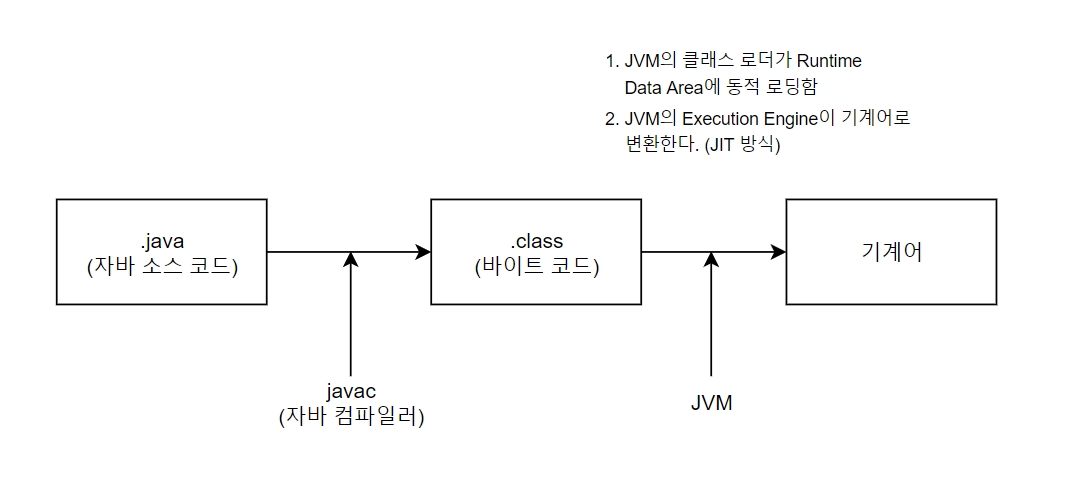 μλ° μμ€(.java)λ₯Ό μλ° μ»΄νμΌλ¬λ₯Ό ν΅ν΄ μλ° λ°μ΄νΈ μ½λ(.class)λ‘ μ»΄νμΌνλ€.