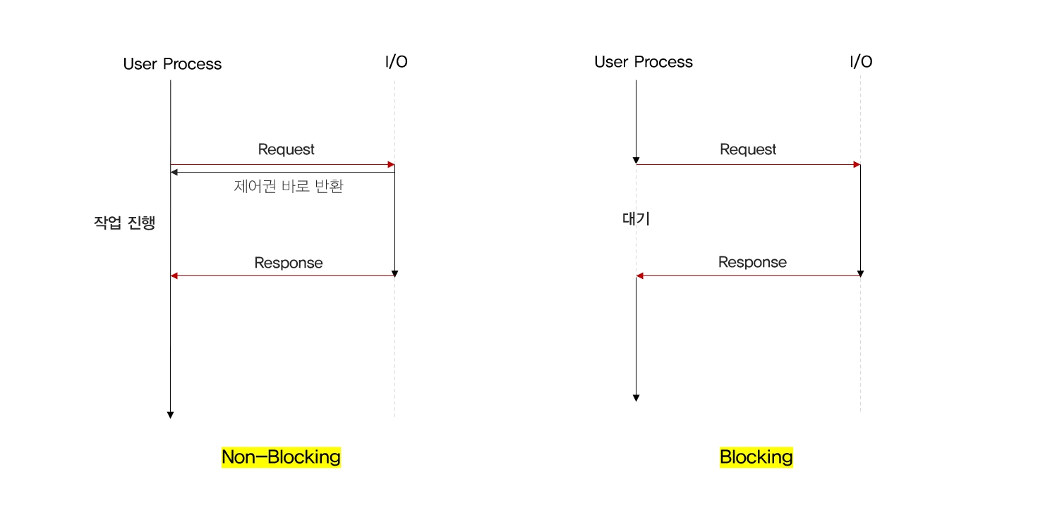 Blocking : ์ ์ ํ๋ก์ธ์ค๊ฐ I/O ์์ ์ด ๋๋ ๋๊น์ง ์ค๋จํ๋ค.